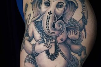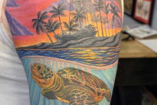 Justin is a versatile tattooer who takes on a wide range of styles, with a focus on large-scale pieces. Working in both color and black and grey, his work leans toward a realistic look while maintaining a bold, artistic edge.